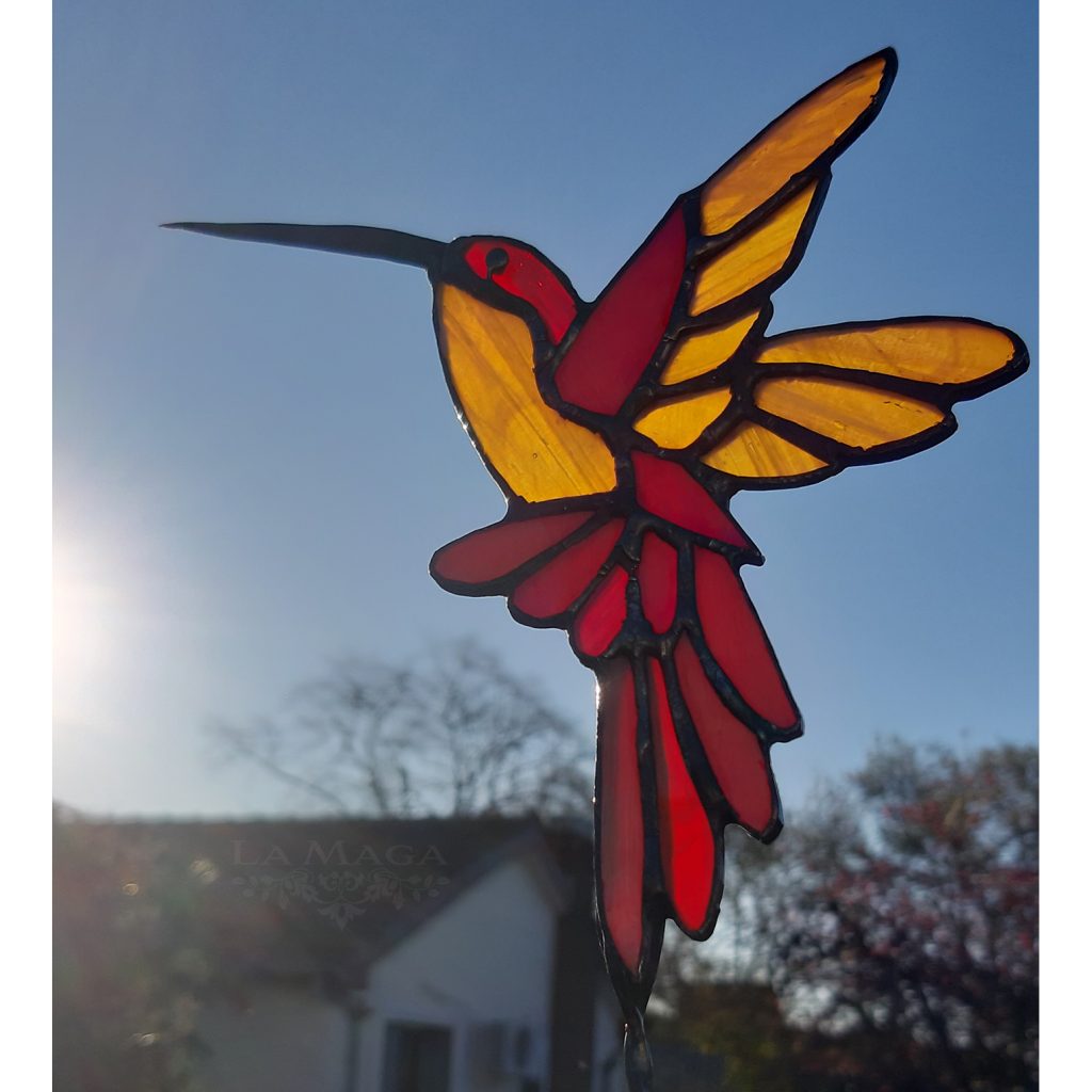 Hace mucho tiempo lancé una serie de colibríes realizados con vidrios iridiscentes y de allí se me antojó bautizaros camaleónicos.