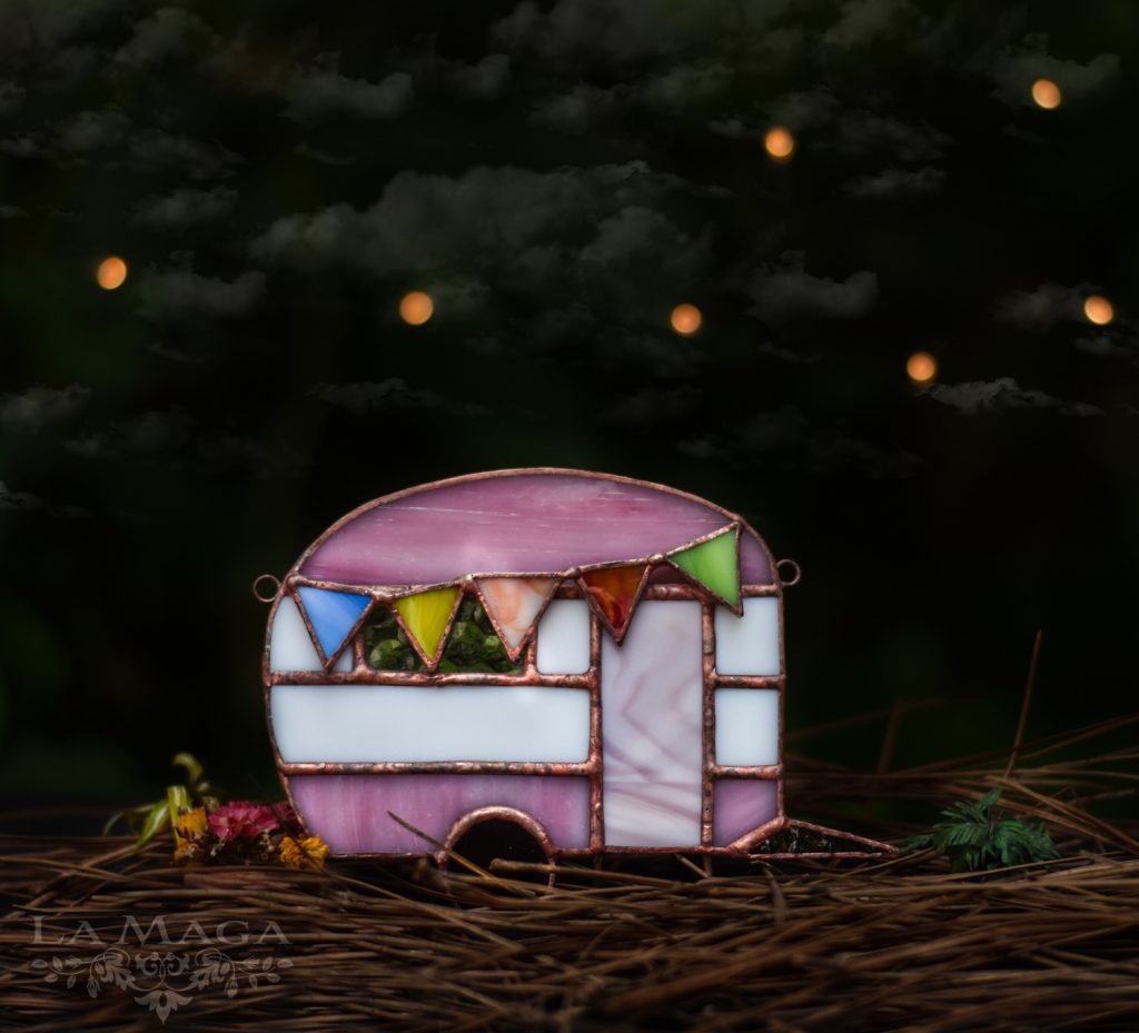 Están confeccionadas con 17 piezas de vidrios importados en diferentes combinaciones de colores, portenciados por los banderines.